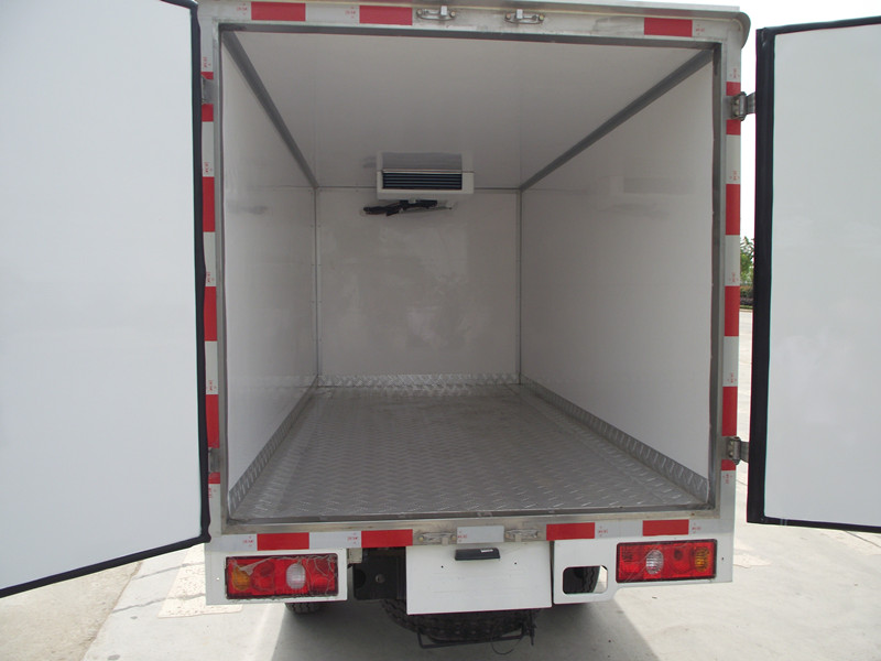 程力晶龍冷藏車廂板材質:內外壁板選用國內優質的機制2.2mm玻璃鋼;中間保溫材料選用厚進口聚氨酯; 廂體厚度80mm 門厚度80mm;底板上面整體鋁花紋板,下面彩鋼板,中間進口聚氨酯;廂體周邊2.5mm鋁合金包邊,不銹鋼包角,不銹鋼門鎖,防碰膠皮4塊,不銹鋼門框, 不銹鋼合頁,箱內節能照明燈。