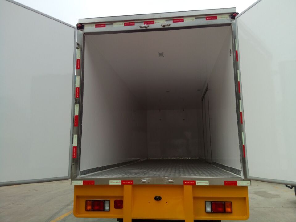 程力專用汽車股份有限公司,引進目前國際最先進冷藏車生產技術并斥巨資購置先進的發泡成型設備和18米大型復合板材生產線,制造出新一代冷藏保溫車。生產的冷藏車廂體內外壁板選用優質的玻璃鋼、不銹鋼或彩鋼板;中間保溫材料選用200px厚進口聚氨酯擠塑板;廂體周邊鋁合金包邊;底板采用整體現澆玻璃鋼。采用新技術、新工藝制造的冷藏車具有保溫性能好、外型美觀、整體質量輕、強度高、無滲漏等特點。廂板耐沖擊性好,對大氣、水和酸、堿、鹽等介質具有良好的耐腐蝕性和抗老化性。經過優化設計,大大降低廂底板離地面高度,增大了車廂的有效容積,車輛行駛的安全性更高。廂底板選裝通風槽,便于冷氣流通全車,并保持廂內溫度均衡。冷藏機組有知名的國產與進口機組選擇,溫度可達深冷要求,機組具有結構簡單、操作方便運行可靠、能耗低制冷量大,噪聲小安裝維護方便等特點。