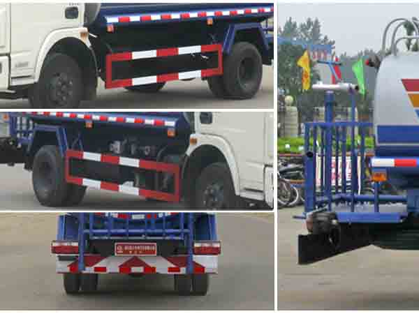整車說明: | 罐體有效容積:4.72立方米;罐體外形尺寸(長/長軸/短軸)(mm):4200/1600/1000。隨底盤選裝駕駛室。防護材料:Q235A碳鋼,連接方式:左右側面及后下部防護均采用焊接連接,后部防護斷面尺寸(mm):200×50×5,后部防護離地高度(mm):500。 |