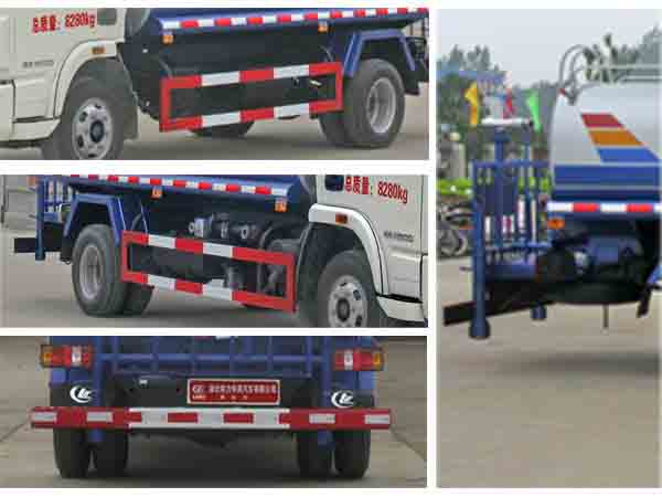 整車說明: | 隨底盤選裝駕駛室。罐體有效容積:4.99立方米,運輸介質為水,密度:1000千克/立方米,罐體外形尺寸(長/長軸/短軸)(mm):4100/1600/1050。防護材料:Q235A碳鋼,連接方式:左右側面及后下部防護均采用焊接連接,后部防護斷面尺寸(mm):100×30×5,后部防護離地高度(mm):500。 |