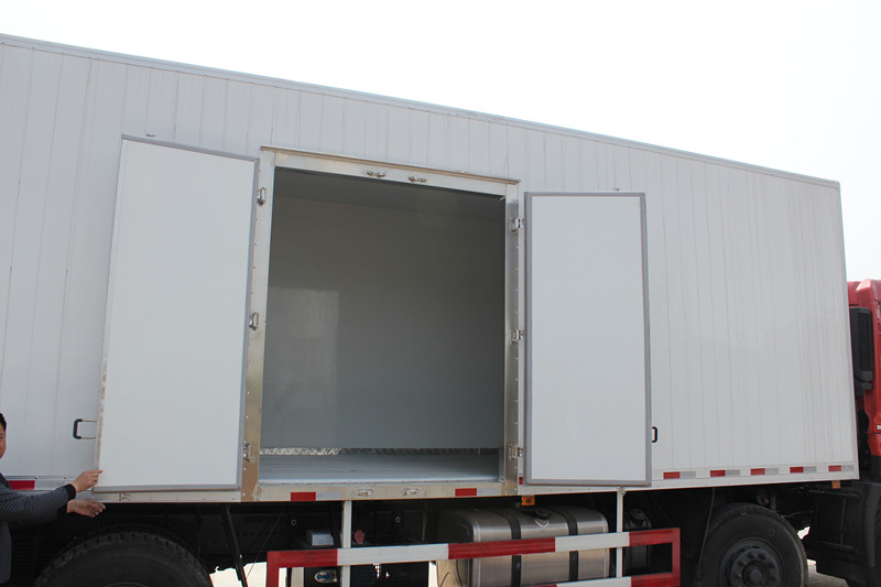 程力專用汽車股份有限公司,引進目前國際最先進冷藏車生產技術并斥巨資購置先進的發泡成型設備和18米大型復合板材生產線,制造出新一代冷藏保溫車。生產的冷藏車廂體內外壁板選用優質的玻璃鋼、不銹鋼或彩鋼板;中間保溫材料選用200px厚進口聚氨酯擠塑板;廂體周邊鋁合金包邊;底板采用整體現澆玻璃鋼。采用新技術、新工藝制造的冷藏車具有保溫性能好、外型美觀、整體質量輕、強度高、無滲漏等特點。廂板耐沖擊性好,對大氣、水和酸、堿、鹽等介質具有良好的耐腐蝕性和抗老化性。經過優化設計,大大降低廂底板離地面高度,增大了車廂的有效容積,車輛行駛的安全性更高。廂底板選裝通風槽,便于冷氣流通全車,并保持廂內溫度均衡。冷藏機組有知名的國產與進口機組選擇,溫度可達深冷要求,機組具有結構簡單、操作方便運行可靠、能耗低制冷量大,噪聲小安裝維護方便等特點。