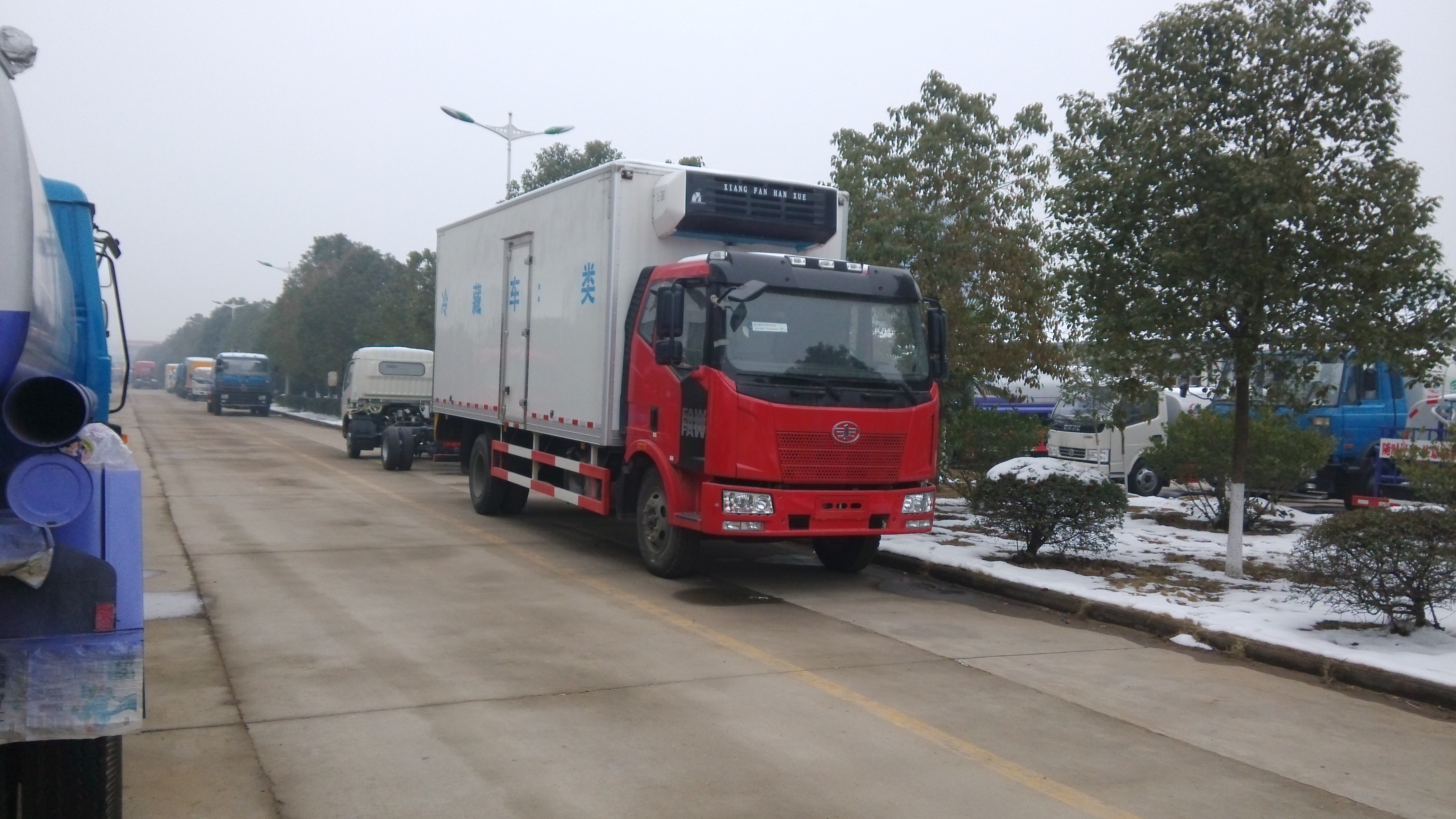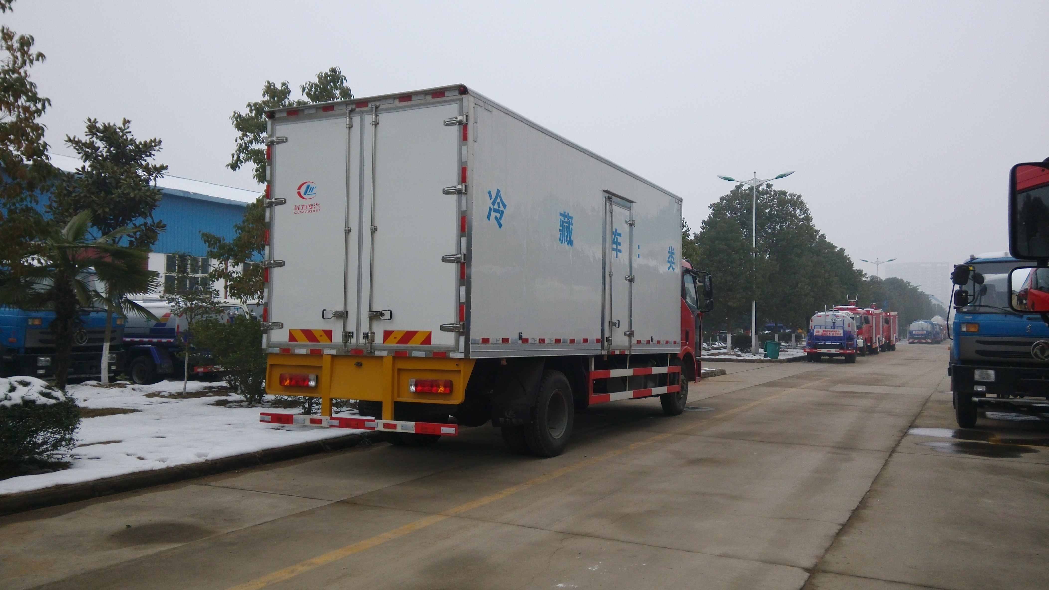 程力專用汽車股份有限公司,引進目前國際最先進冷藏車生產技術并斥巨資購置先進的發泡成型設備和18米大型復合板材生產線,制造出新一代冷藏保溫車。生產的冷藏車廂體內外壁板選用優質的玻璃鋼、不銹鋼或彩鋼板;中間保溫材料選用200px厚進口聚氨酯擠塑板;廂體周邊鋁合金包邊;底板采用整體現澆玻璃鋼。采用新技術、新工藝制造的冷藏車具有保溫性能好、外型美觀、整體質量輕、強度高、無滲漏等特點。廂板耐沖擊性好,對大氣、水和酸、堿、鹽等介質具有良好的耐腐蝕性和抗老化性。經過優化設計,大大降低廂底板離地面高度,增大了車廂的有效容積,車輛行駛的安全性更高。廂底板選裝通風槽,便于冷氣流通全車,并保持廂內溫度均衡。冷藏機組有知名的國產與進口機組選擇,溫度可達深冷要求,機組具有結構簡單、操作方便運行可靠、能耗低制冷量大,噪聲小安裝維護方便等特點。