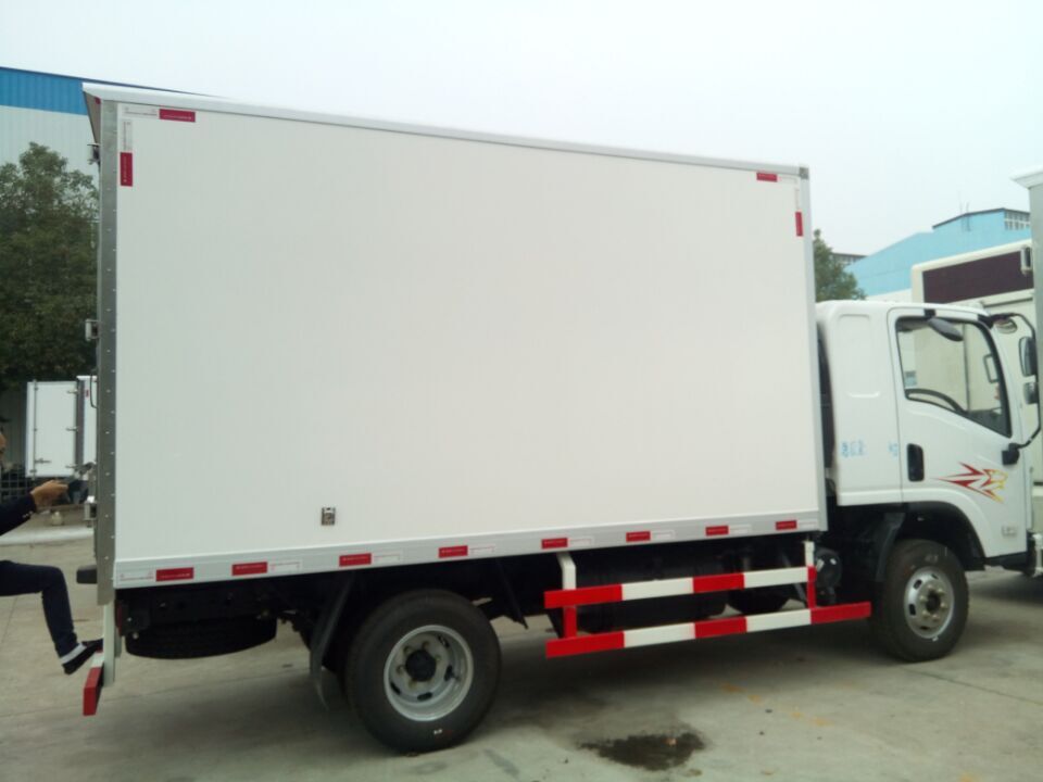 程力晶龍冷藏車廂板材質:內外壁板選用國內優質的機制2.2mm玻璃鋼;中間保溫材料選用厚進口聚氨酯; 廂體厚度80mm 門厚度80mm;底板上面整體鋁花紋板,下面彩鋼板,中間進口聚氨酯;廂體周邊2.5mm鋁合金包邊,不銹鋼包角,不銹鋼門鎖,防碰膠皮4塊,不銹鋼門框, 不銹鋼合頁,箱內節能照明燈。
