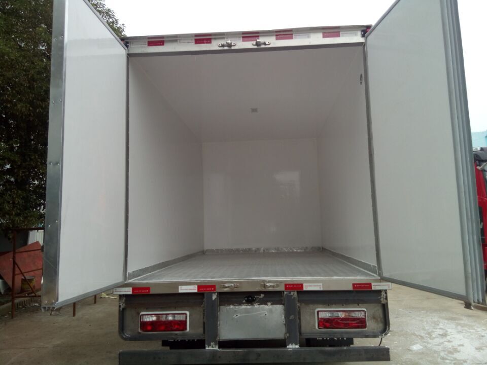 程力晶龍冷藏車廂板材質:內外壁板選用國內優質的機制2.2mm玻璃鋼;中間保溫材料選用厚進口聚氨酯; 廂體厚度80mm 門厚度80mm;底板上面整體鋁花紋板,下面彩鋼板,中間進口聚氨酯;廂體周邊2.5mm鋁合金包邊,不銹鋼包角,不銹鋼門鎖,防碰膠皮4塊,不銹鋼門框, 不銹鋼合頁,箱內節能照明燈。