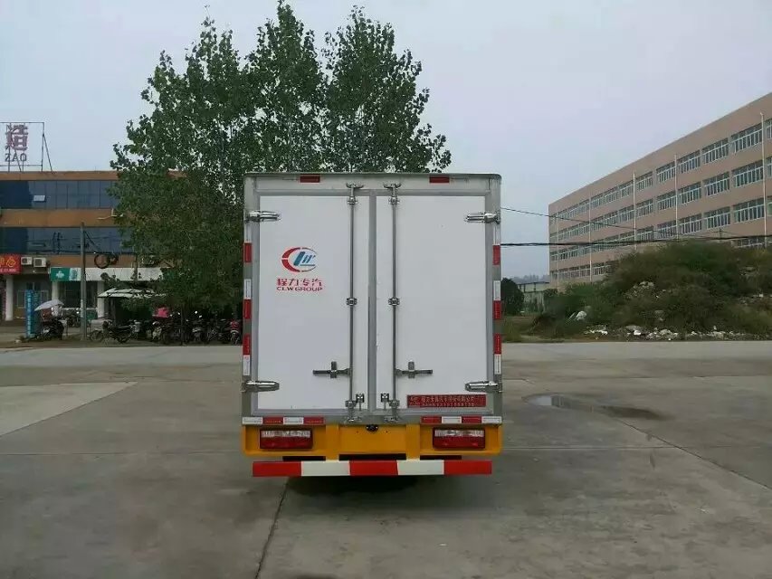 程力晶龍冷藏車廂板材質:內外壁板選用國內優質的機制2.2mm玻璃鋼;中間保溫材料選用厚進口聚氨酯; 廂體厚度80mm 門厚度80mm;底板上面整體鋁花紋板,下面彩鋼板,中間進口聚氨酯;廂體周邊2.5mm鋁合金包邊,不銹鋼包角,不銹鋼門鎖,防碰膠皮4塊,不銹鋼門框, 不銹鋼合頁,箱內節能照明燈。