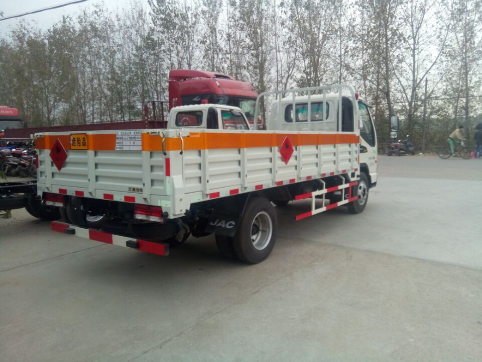 其它 | 備注:運輸介質為易燃氣體氣瓶和非易燃無毒氣體氣瓶,類項號為2.1和2.2;側后防護材料為Q235A,螺栓連接,后防護截面尺寸(高×寬)為100mm×50mm,離地高度為470mm;選用危險品運輸車專用底盤,僅選用底盤子午線輪胎,ABS系統控制器型號:CM4YL,ABS系統控制器生產企業:廣州市科密汽車制動技術開發有限公司,前輪安裝盤式制動器,安裝限速裝置,限速80km/h,排氣管前置,安裝具有衛星定位功能的行駛記錄儀.僅選用底盤發動機HFC4DA1-2C和YC4FA115-40,對應油耗值(L/100km)為12.7和12.5 |