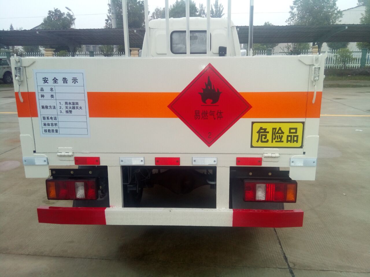 整車說明: | 運輸介質:具有獨立容器包裝的易燃氣體氣瓶,類項號:2.1;選裝具有獨立包裝的非易燃無毒氣體的氣瓶,類項號:2.2。ABS系統型號:CM4YL,廠家:廣州市科密汽車制動技術開發有限公司;裝配限速裝置,限制最高車速不得超過80km/h,安裝具有衛星定位功能的行駛記錄儀,只裝配底盤子午胎,排氣管前置.采用底盤前輪盤式制動器,選裝無護欄結構,隨底盤選裝駕駛室。 |