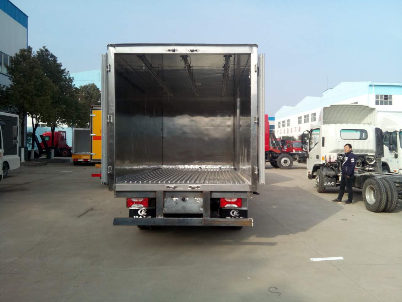 保溫箱體配置:箱體尺寸長×寬×高為:4050×1930×1900計14.8立方,廂體厚度為8厘米。內外板材采用冷藏車專用玻璃鋼,(可反射陽光),中間夾層為聚氨酯發泡隔熱材料,(防火阻燃隔熱)千噸大型壓力機壓制而成,配件箱體全為不銹鋼鎖件,不銹鋼包角,不銹鋼門框,帶有頂燈及防撞塊。廂體內部裝有照明燈和誤操作報警器,加裝鋁合金材質導風槽,導風槽可是廂體底部均勻的吹到冷風。我廠的冷藏保溫車保溫材料選用進口級別XPS,吸水率≤1,導熱系數≤0.028W/mk,抗壓≥150Kpa,密度30~45kg/m3,使用國際上最為先進的第五代全封閉聚氨酯板塊粘接結構,廂板表面材料有玻璃鋼、不銹鋼、鋁合金、彩鋼板等材料可供選擇,廂體成型后具有質量輕,保溫系數高,抗沖擊力強,無滲漏等優點,對大氣、水和酸、堿、鹽等介質具有良好的耐腐蝕性和抗老化性。通過優化設計,降低了整車質心,增大了有效容積。經測試,整車綜合節能率,使用壽命,比一般冷藏保溫廂高1~2倍。