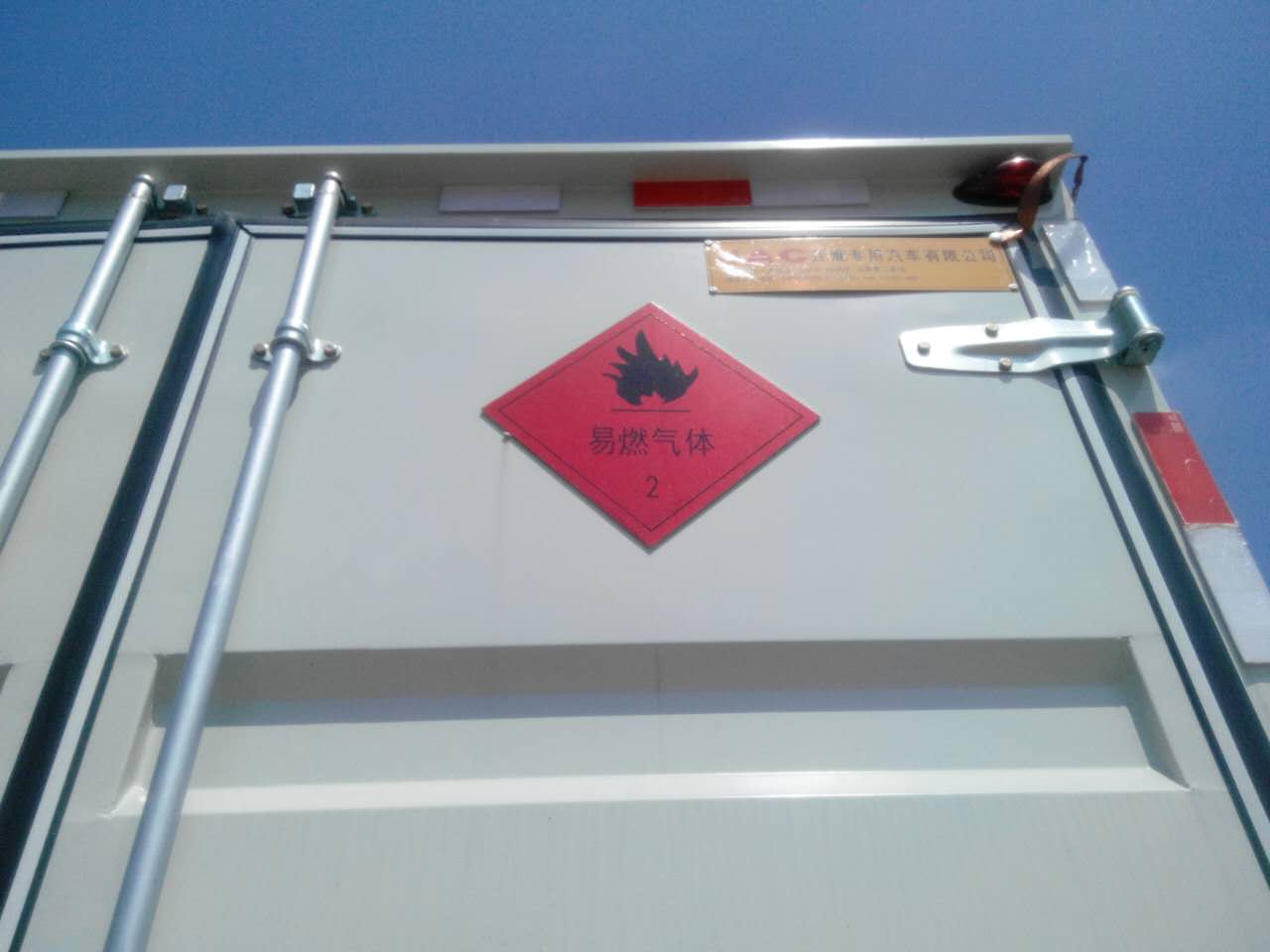運(yùn)輸介質(zhì)為易燃?xì)怏w氣瓶,類項(xiàng)號(hào)為2.1;選裝帶液壓尾板,選裝不帶側(cè)門,側(cè)后防護(hù)材料為Q235A,螺栓連接,后防護(hù)截面尺寸(高×寬)為100mm×50mm,離地高度為424mm;選用危險(xiǎn)品運(yùn)輸車專用底盤,僅選用底盤子午線輪胎,ABS系統(tǒng)控制器型號(hào):CM4YL,ABS系統(tǒng)控制器生產(chǎn)企業(yè):廣州市科密汽車制動(dòng)技術(shù)開發(fā)有限公司,前輪安裝盤式制動(dòng)器,安裝限速裝置,限速80km/h,排氣管前置,安裝具有衛(wèi)星定位功能的行駛記錄儀.僅選用底盤發(fā)動(dòng)機(jī)HFC4DA1-2C和YC4FA115-40,對(duì)應(yīng)油耗值(L/100km)為12.7和12.5 | |||