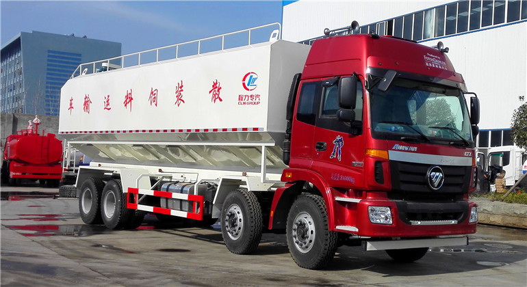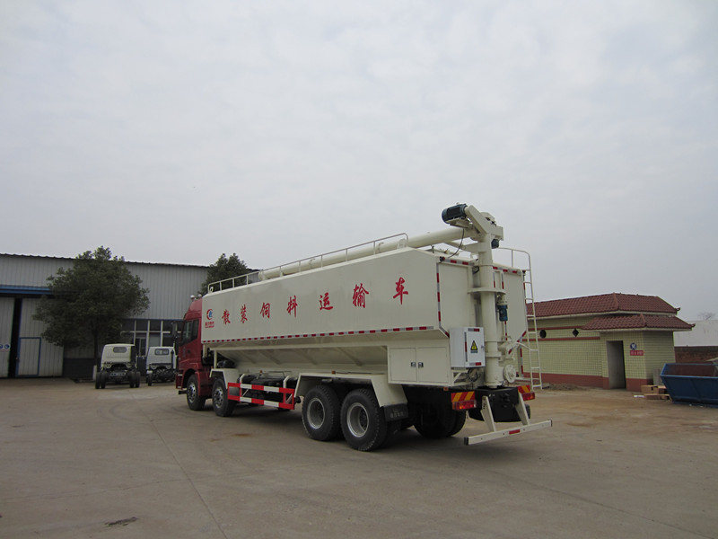 散裝飼料車工作原理:袋料,散裝飼料車在工作的時(shí)候首先打開(kāi)箱體頂部中間兩倉(cāng)的接料口,裝滿第一種飼料并保證每倉(cāng)裝載3T然后打開(kāi)最前及最后兩倉(cāng)接料口,裝第二種飼料。這兩個(gè)倉(cāng)位常閉倉(cāng),設(shè)有單獨(dú)倉(cāng)口,因此也可分別裝載兩種飼料,這樣就實(shí)現(xiàn)整車裝運(yùn)三種不同飼料的功能。