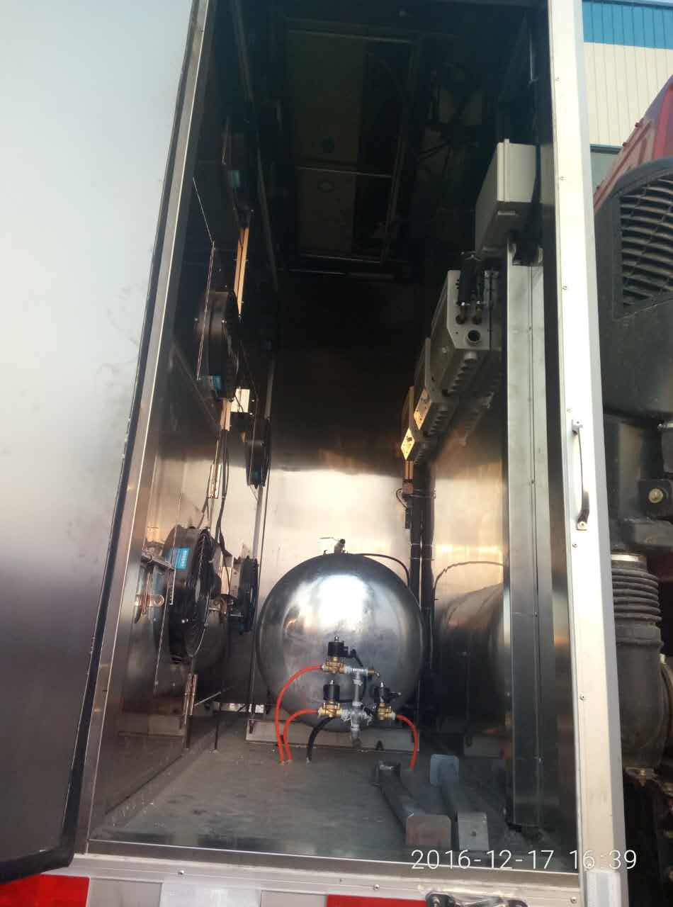 1.車廂內部電腦自動控制,實現恒溫,恒濕,通氣,喂水,喂食,配置有5千瓦發電機一臺,冷藏車用制冷機組一臺,獨立外接電制冷機組一套,暖風式加熱器3臺,氣壓式噴霧,喂水水箱各1套,喂食飼料箱1個,廢液收集箱1個