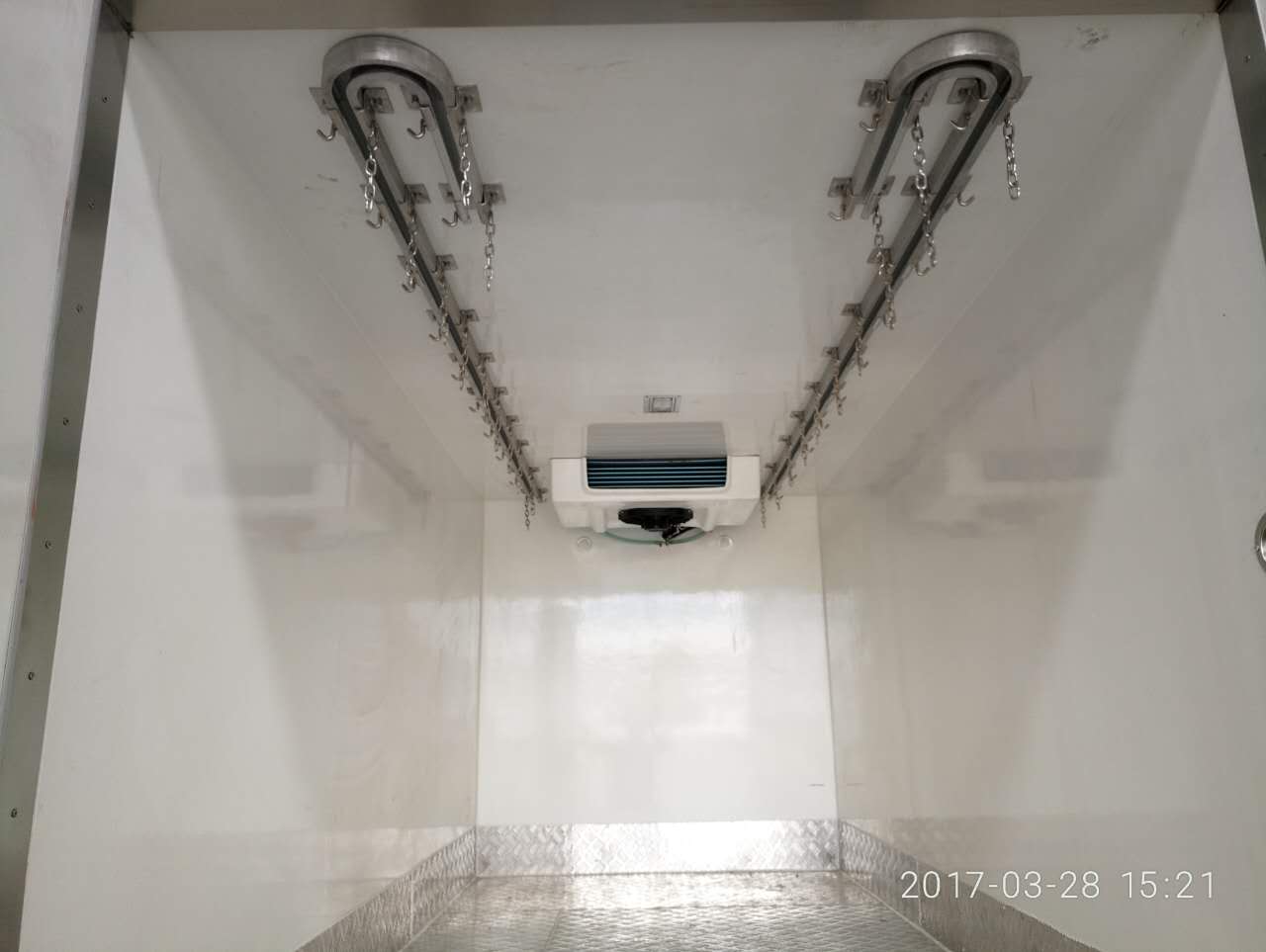 程力專用汽車股份有限公司,引進目前國際最先進冷藏車生產技術并斥巨資購置先進的發泡成型設備和18米大型復合板材生產線,制造出新一代冷藏保溫車。生產的冷藏車廂體內外壁板選用優質的玻璃鋼、不銹鋼或彩鋼板;中間保溫材料選用200px厚進口聚氨酯擠塑板;廂體周邊鋁合金包邊;底板采用整體現澆玻璃鋼。采用新技術、新工藝制造的冷藏車具有保溫性能好、外型美觀、整體質量輕、強度高、無滲漏等特點。廂板耐沖擊性好,對大氣、水和酸、堿、鹽等介質具有良好的耐腐蝕性和抗老化性。經過優化設計,大大降低廂底板離地面高度,增大了車廂的有效容積,車輛行駛的安全性更高。廂底板選裝通風槽,便于冷氣流通全車,并保持廂內溫度均衡。冷藏機組有知名的國產與進口機組選擇,溫度可達深冷要求,機組具有結構簡單、操作方便運行可靠、能耗低制冷量大,噪聲小安裝維護方便等特點。