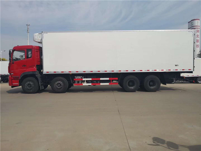 底盤技術(shù)參數(shù) 程力專用汽車股份有限公司,引進(jìn)目前國際最先進(jìn)冷藏車生產(chǎn)技術(shù)并斥巨資購置先進(jìn)的發(fā)泡成型設(shè)備和18米大型復(fù)合板材生產(chǎn)線,制造出新一代冷藏保溫車。生產(chǎn)的冷藏車廂體內(nèi)外壁板選用優(yōu)質(zhì)的玻璃鋼、不銹鋼或彩鋼板;中間保溫材料選用200px厚進(jìn)口聚氨酯擠塑板;廂體周邊鋁合金包邊;底板采用整體現(xiàn)澆玻璃鋼。采用新技術(shù)、新工藝制造的冷藏車具有保溫性能好、外型美觀、整體質(zhì)量輕、強(qiáng)度高、無滲漏等特點(diǎn)。廂板耐沖擊性好,對大氣、水和酸、堿、鹽等介質(zhì)具有良好的耐腐蝕性和抗老化性。經(jīng)過優(yōu)化設(shè)計(jì),大大降低廂底板離地面高度,增大了車廂的有效容積,車輛行駛的安全性更高。廂底板選裝通風(fēng)槽,便于冷氣流通全車,并保持廂內(nèi)溫度均衡。冷藏機(jī)組有知名的國產(chǎn)與進(jìn)口機(jī)組選擇,溫度可達(dá)深冷要求,機(jī)組具有結(jié)構(gòu)簡單、操作方便運(yùn)行可靠、能耗低制冷量大,噪聲小安裝維護(hù)方便等特點(diǎn)。 ▲廂體結(jié)構(gòu)緊湊、牢固可靠、絕熱性好。 ▲廂體材料符合食品運(yùn)輸衛(wèi)生要求。 ▲后雙門機(jī)構(gòu)(門鎖、手柄、拉桿、五金鉸鏈、掛鉤等)選用國際廂式車通用標(biāo)準(zhǔn)件。 ▲后門周邊采用優(yōu)質(zhì)蒸氣熟化密封條,使用壽命長、密封性能好,開關(guān)門輕松,方便。