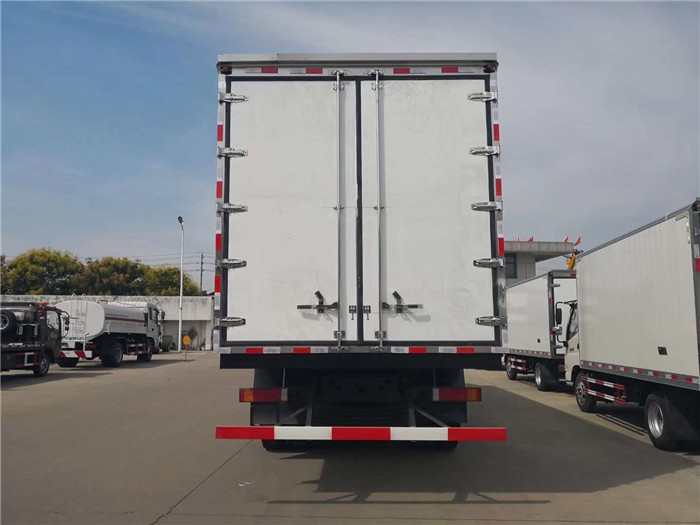 其它 | 選裝僅高度不同的駕駛室.隨底盤選裝駕駛室前面罩,高頂駕駛室頂部氣喇叭為選裝件,側(cè)窗選裝樹脂裝飾板,前霧燈為選裝件,貨廂可選裝單開門,雙開門和不開門型式,可選裝其它廠家功率相當(dāng)?shù)闹评錂C(jī)組.選裝升降尾板,尾板收起狀態(tài)時的水平長度為295mm;消聲器可選裝右置.駕駛室頂部裝飾燈為選裝件.隨底盤選裝油箱位置.廂體頂部封閉,不可開啟.側(cè)防護(hù):材料Q235,螺栓連接.后下防護(hù):材質(zhì)Q235.螺栓連接,斷面尺寸120×60mm,離地高度420mm.ABS生產(chǎn)廠家:東科克諾爾商用車制動系統(tǒng)(十堰)有限公司;型號:3631010-C2000. | ||||||