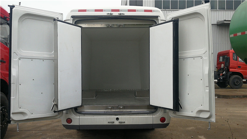廂體內膽式廂體,內外板材采用冷藏車專用玻璃鋼,(可反射陽光),中間夾層為聚氨酯隔熱材料,(防火阻燃隔熱),配置箱體全為不銹鋼鎖件,不銹鋼包角,不銹鋼門框,帶有頂燈、廂板表面材料有玻璃鋼、不銹鋼、鋁合金、彩鋼板等材料可供選擇,廂體成型后具有質量輕,保溫系數高,抗沖擊力強,無滲漏等優點,對大氣、水和酸、堿、鹽等介質具有良好的耐腐蝕性和抗老化性 。通過優化設計,降低了整車質心,增大了有效容積。經測試,整車綜合節能率,使用壽命,比一般冷藏保溫廂高1~2倍。選裝5面通風槽,溫濕度記錄儀等設備。