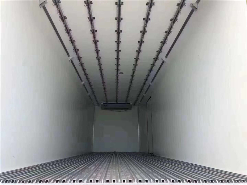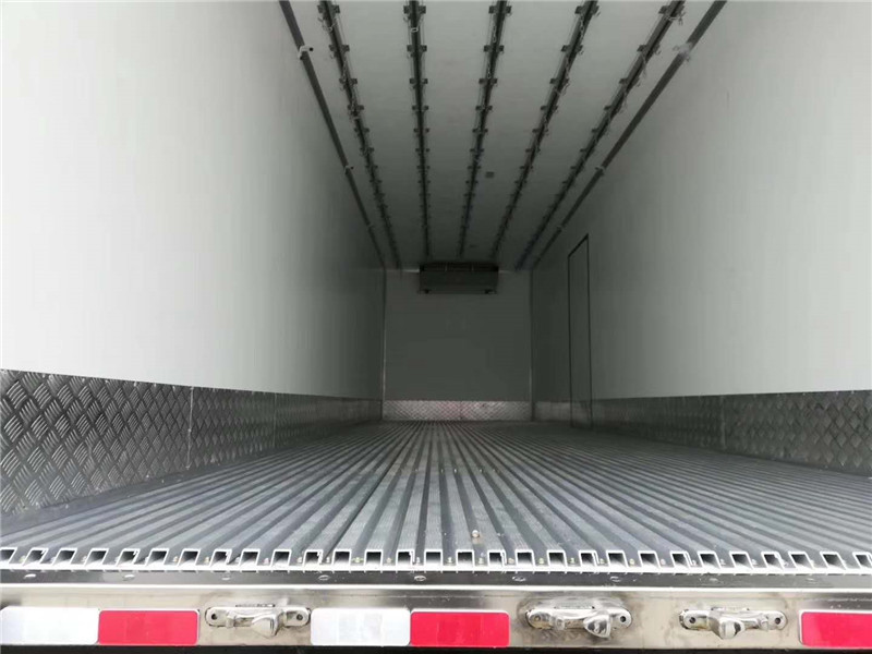 東風天龍前四后八國六9米6冷藏車標準配置:《斷橋隔溫工藝、整體結構框架》;外面料為3mm厚新款啞光玻璃鋼;側板+頂板:龍骨斷橋為松木復合板;木質隔溫結構;夾心為聚氨酯保溫材料;全密封雙組合聚氨酯膠粘連;廂體厚度為8cm;鍍鋅包角;最新款鋁合金包邊型材;型材局部厚度為4mm(鋼制鉚釘加固);廂體內部采用1個LED照明燈及廂體示寬燈;后門框為2mm厚不銹鋼材質;門框密封條為三元乙丙橡膠材質;加厚型不銹鋼合頁及鎖件;副梁為Q510車用大梁鋼;15mm厚大梁墊皮;加裝防撞膠塊;3M反光膠板;廂體內部選裝肉鉤導軌,地板通風槽,溫濕度記錄儀等設備,制冷設備可選國產鄭州凱雪960非獨立冷機,可選裝進口獨立冷機美國開利S850或美國冷王T800獨立冷機,選裝備電系統。