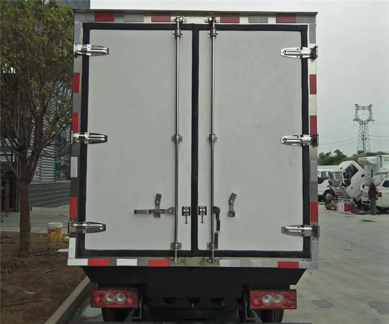 福田小卡之星國六3米5冷藏車標準配置:箱體尺寸長×寬×高為:3500×1670×1700,9.9立方,廂體厚度為8厘米。內外板材采用冷藏車專用玻璃鋼,(可反射陽光),中間夾層為保溫隔熱材料,配置箱體全為不銹鋼鎖件,不銹鋼包角,不銹鋼門框,帶有頂燈及防撞塊。廂板表面材料有玻璃鋼、不銹鋼、鋁合金、彩鋼板等材料可供選擇,廂體成型后具有質量輕,保溫系數高,抗沖擊力強,無滲漏等優點,對大氣、水和酸、堿、鹽等介質具有良好的耐腐蝕性和抗老化性 。通過優化設計,降低了整車質心,增大了有效容積。經測試,整車綜合節能率,使用壽命,比一般冷藏保溫廂高1~2倍,廂體副駕駛邊選裝開側門,選裝地板通風槽,肉鉤導軌,溫濕度記錄儀等設備。