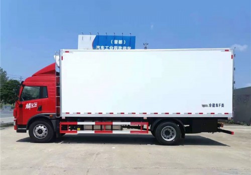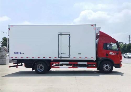 解放麟VH國六6米8冷藏車上裝配置:整車尺寸:9150x2600x3995(mm),箱內尺寸:6750x2450x2500(mm),斷橋隔熱工藝、整體結構框架;內外玻璃鋼板夾聚氨酯保溫層真空復合而成,底板為玻璃鋼板,箱體副駕駛邊開側門,地板加裝加厚矩形通風槽,龍骨斷橋為松木復合板;木質隔溫結構;廂體厚度為8cm;不銹鋼包角;最新款鋁合金包邊型材;廂體內部安裝2個LED照明燈;后門框為2mm厚不銹鋼材質;門框密封條為橡膠材質;加厚型不銹鋼鉸鏈及鎖件;箱體內部可根據用戶實際需求選擇肉鉤導軌,地板通風槽,溫濕度記錄儀,攔貨槽等專用設備。制冷設備可選擇國產凱雪,颶豐,進口開利或冷王制冷機組。