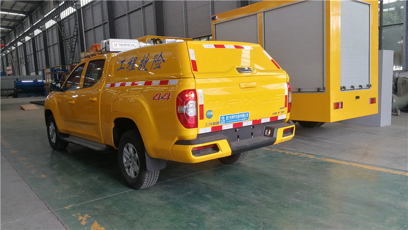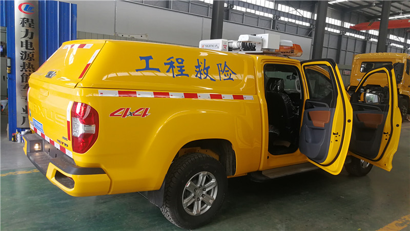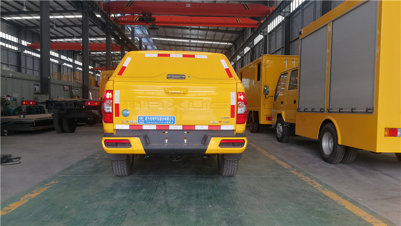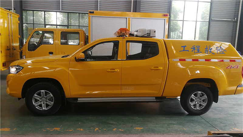 上汽大通國六4驅皮卡工程救險車車輛配置:上汽大通雙排皮卡車身,上柴國六163馬力柴油發動機,型號SC20M163Q6A,可選手動擋(自動擋)6AT法國邦奇/6MT韓國現代,四驅形式(博格華納),分時四驅(四驅低速4L放大扭矩2.5倍),雙叉臂螺旋獨立懸架,多功能方向盤+定速巡航,ECO/POWER/NORMAL三模駕駛,主副駕駛室安全氣囊,上坡輔助,陡坡緩降,自動空調系統,自動感應雨刷,方向助力,ABS,電動玻璃,中控門鎖,遙控鑰匙。