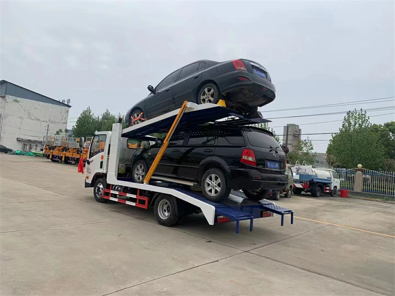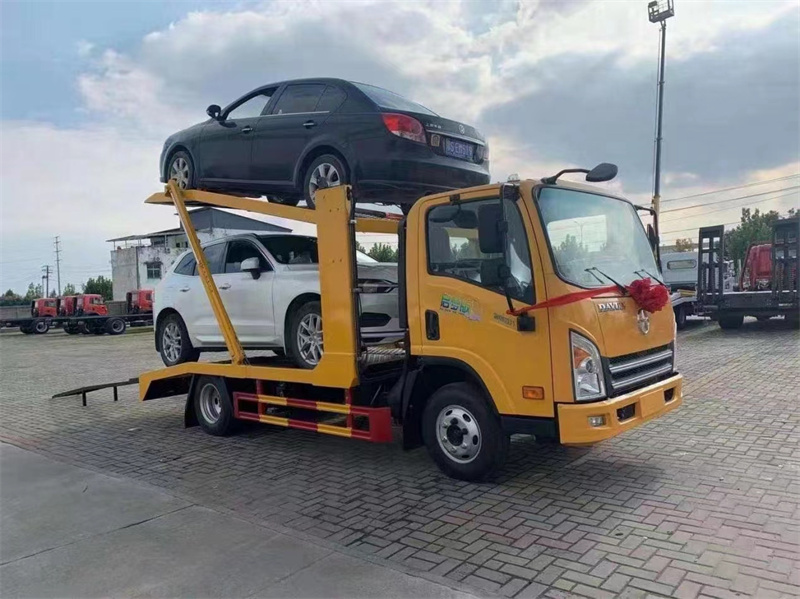 大運藍牌2位板轎運車特點:二位板轎運車又稱一拖二雙層清障車,相較于普通一拖二清障車,可以同時在不落地的情況下,拉兩輛商品車,節省用車用人成本,特別適合城市間轉運車輛,4S店調配車輛,短途轉運地跑最佳車輛。二位轎運車的廂體結構我們可以把他分為骨架式該形式轎運車自重輕、成本低、油耗小,但運輸貨物方便,且轎車不易受損。