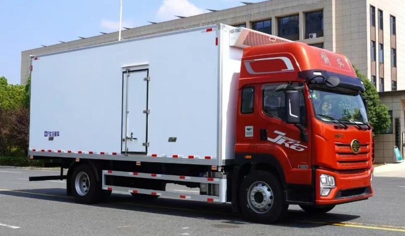 解放JK6國六6米8冷藏車采用鋼木結構,斷橋隔熱技術,鍍鋅管骨架,內外選用優質玻璃鋼(不吸光、隔熱性好、硬度強、抗氧化),大柴CA6DH1-26E61、陜齒F8JZ105CM(自動擋全鋁殼)、378鑄造橋(速比4.111/加寬蹄片/鼓式制動)、275/80R22.5-18PR(全車輕量化鋼圈)、237*75*6.5、5300軸距、舒適包。主要用于長途食品,肉制品冷鏈物流配送。