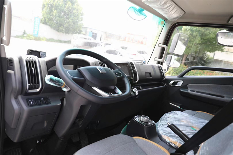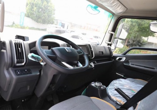 吉利遠程星智4米2純電動冷藏車特點:吉利遠程星智4米2純電動冷藏車內飾又傳承了幾分乘用車的風范,其中一個亮點就是換擋機構采用的是旋鈕式設計,完全自動化體驗,不需要頻繁操作,可以大幅減少駕駛員的疲勞感,還標配的有倒車影像、電動空調、電動門窗、日間行車燈、車聯網、BCM功能(自動落鎖、內部照明延時功能、內部照明自動熄火功能、車門防盜報警)、ABS、T-BXO等配置,同樣也讓駕乘體驗更升一級。駕駛室內最引人注目的一個亮點就是中控上超大顯示屏,不僅在尺寸上可以秒殺不少同級別輕卡,在功能上也有驚喜,尤其是360環視和貨箱監控,可以讓駕駛員隨時掌控車輛周圍以及貨箱內的狀況,規避各種風險。