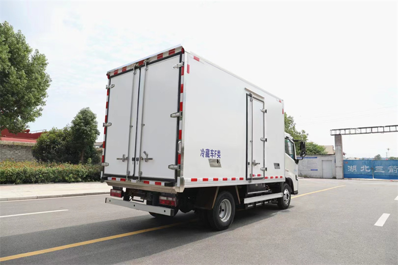 吉利遠程星智4米2純電動冷藏車車廂內部尺寸:4000 x2100x2100(mm),冷藏箱板是由鍍鋅管骨架加上環保防水木板一次成型,中間8CM新型環保輕量化保溫材料,加厚3.0玻璃鋼,高強度粘合劑、熱壓成型,外框采用304不銹鋼、加厚鋁型材包邊、27不銹鋼大門鎖、配件,箱體拼接出來不打膠無縫隙,降溫速度快、散溫慢、保溫效果好,門帶斜邊,副梁是510大梁鋼一次性折成,用壓板鎖緊,側護網和后保險杠一次性成型。