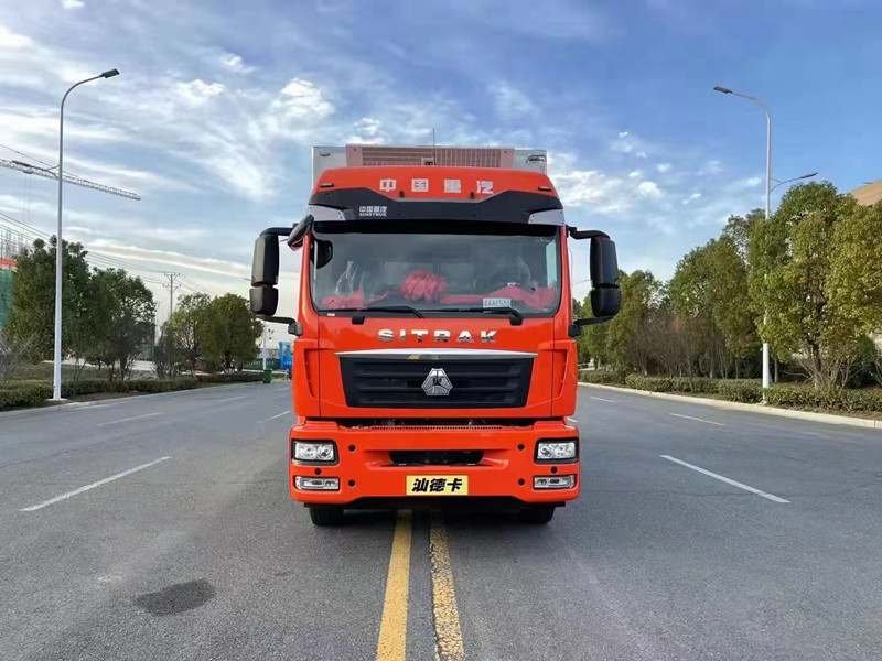 汕德卡國六6米8冷藏車特點:整車的設計風格和自家大哥汕德卡C7H非常相似,在眉宇間也可以看到一些德國MAN TGM載貨車的影子,外觀風格比較硬朗,充滿了德國工業風格的味道。中國重汽四個大字印刻在車頂,展示了自己的身份,同時駕駛室為四氣囊懸掛,提升了行駛在路況較差區域的駕駛艙舒適性。后視鏡采用了一體式后視鏡的結構,使用了不同于橘色車身的黑色材質,與車身形成拼色設計,提升了前臉的時尚感。該車采用了一體式后視鏡的設計,相比于常見鐵支架后視鏡美觀許多。