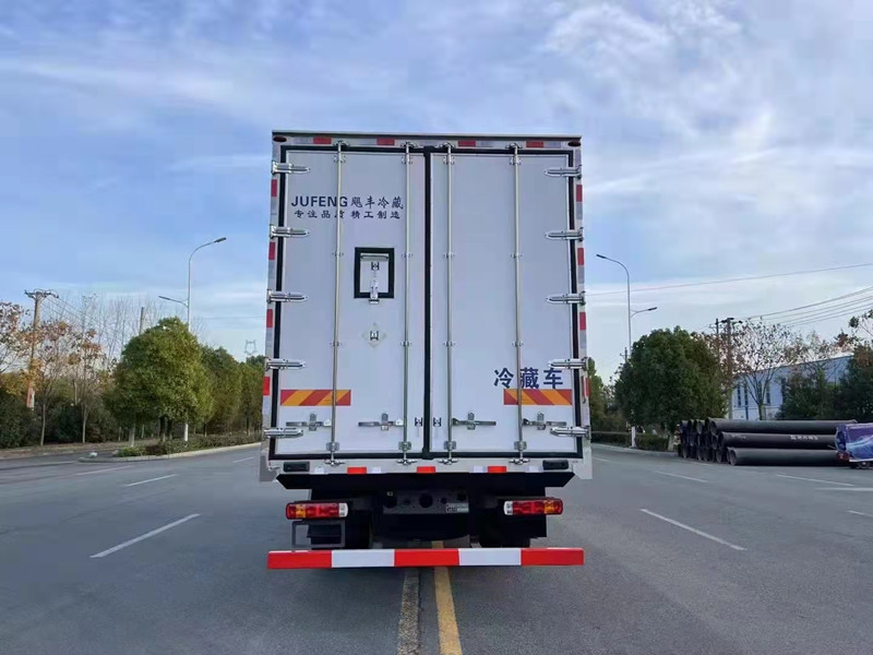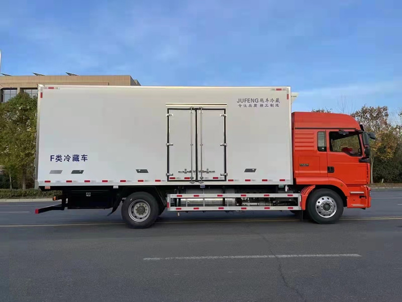汕德卡國六6米8冷藏車上裝配置:冷藏內箱體尺寸:6800*2430*2450(mm),冷藏箱板是由鍍鋅管骨架加上環保防水木板一次成型,中間8CM新型環保輕量化保溫材料,加厚3.0玻璃鋼,高強度粘合劑、熱壓成型,外框采用304不銹鋼、加厚鋁型材包邊、27不銹鋼大門鎖、配件,箱體拼接出來不打膠無縫隙,降溫速度快、散溫慢、保溫效果好,門帶斜邊,副梁是510大梁鋼一次性折成,用壓板鎖緊,側護網和后保險杠一次性成型。