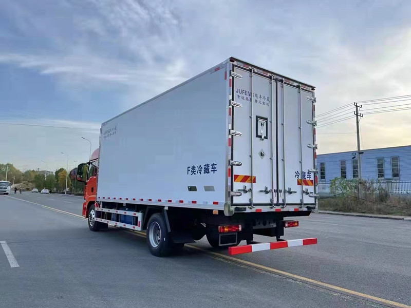 冷藏車廂生產線是國際最先進18米大型復合板材生產線,壓板臺面生產前機器自動吸塵干凈,保證壓板機一次壓制成型,其生產設備及技術均領先同行業標準,箱體外形美觀,整體質量輕,強度高,無滲漏特點,箱體堅固耐用,保溫效果高,采用國際通用三明治工藝+我廠專利木質工藝(龍骨連接鑲入環保防水木材起保溫耐腐蝕作用)、斷橋隔熱技術,保溫效果達到國家A級標準。箱體內部選裝底板通風槽,頂部肉鉤導軌,內部全不銹鋼配置,溫濕度記錄儀等冷藏專用設備。制冷設備可選擇國產或進口非獨立機組,選裝進口開利S750,冷王T88獨立制冷機組,最低溫度可達-15度,可根據運輸貨物要求進行調節。