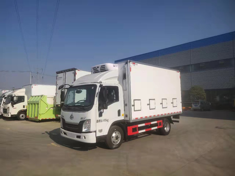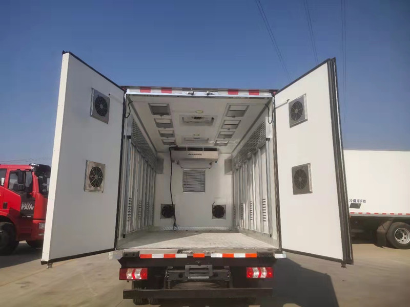 柳汽乘龍藍(lán)牌4米2雞苗運輸車雞苗箱體內(nèi)部專用配置:【恒溫設(shè)備】凱利制冷機(jī)組,水暖加熱;【通風(fēng)設(shè)備】廂體兩側(cè)外部可開啟通風(fēng)窗口共8個;頂部開開啟排氣天窗2支,排氣扇4支,尾門排氣扇4支,廂體上部兩側(cè)通風(fēng)道。地板鋁花紋通風(fēng)道。【翻轉(zhuǎn)貨架】廂體兩側(cè)手動翻轉(zhuǎn)堆貨貨架;【供電設(shè)備】直流柴油發(fā)電機(jī)(排氣扇供電),【溫濕度記錄儀】溫度,濕度監(jiān)測。安裝雙溫制冷機(jī)組,夏天制冷,冬天加熱。