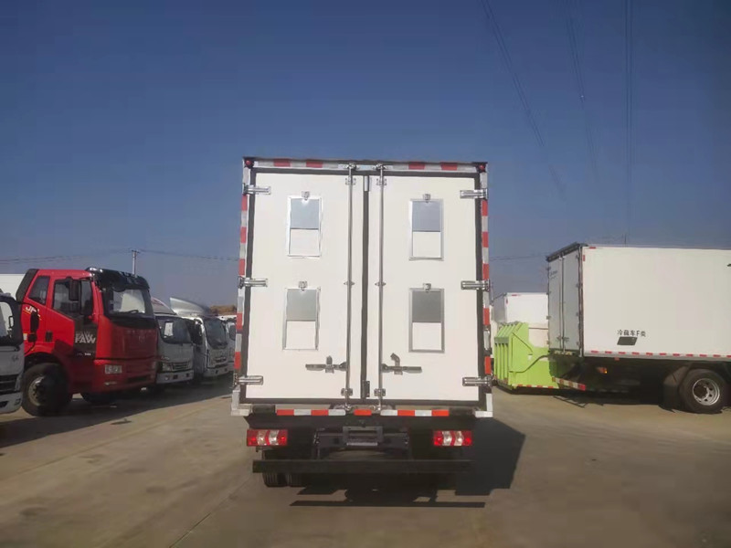 柳汽乘龍藍(lán)牌4米2雞苗運輸車上裝專用配置:雞苗箱體內(nèi)尺寸4050x2100X2100(mm),廂體采用真空吸附、液壓吸附一體成型生產(chǎn)線制造,三明治復(fù)合粘接,保溫性能達(dá)到國家A級標(biāo)準(zhǔn)。廂板材質(zhì):內(nèi)外壁板選用國內(nèi)優(yōu)質(zhì)2.2mm玻璃鋼(不吸光、隔熱性好、硬度強(qiáng)、抗氧化);中間保溫層為XPS擠塑聚笨板;廂體厚度8CM。地板采用鋁花紋板,門邊條采用迷宮式橡膠密封條。廂體配件:廂體周邊鋁合金包邊,不銹鋼包角,不銹鋼門鎖,不銹鋼門框及合頁,廂體內(nèi)節(jié)能LED照明燈。
