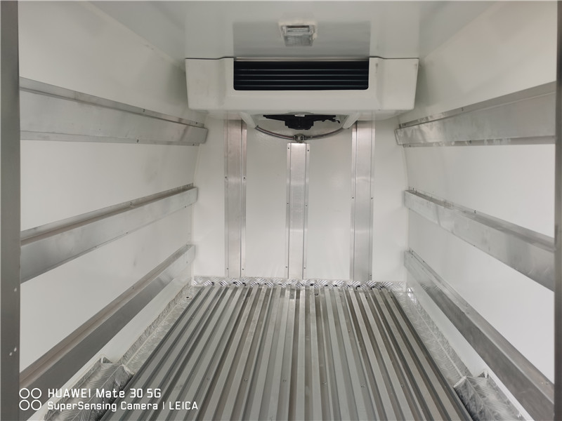 長安星五藥品面包冷藏車車上裝配置:內膽圓弧式廂體,箱體內尺寸1740*1200*1080(mm),廂體采用真空吸附、液壓吸附一體成型生產線制造,三明治復合粘接,保溫性能達到國家A級標準。廂板材質:內外壁板選用國內優質玻璃鋼(不吸光、隔熱性好、硬度強、抗氧化);中間保溫層為XPS擠塑聚笨板。地板采用鋁花紋板,門邊條采用迷宮式橡膠密封條。廂體配件:不銹鋼門鎖鉸鏈,不銹鋼門框及合頁,廂體內節能LED照明燈。箱體內部加裝5面通風槽,安裝溫濕度記錄儀(帶打印功能),安裝國產保險制冷機組,最低溫度可達-5度。