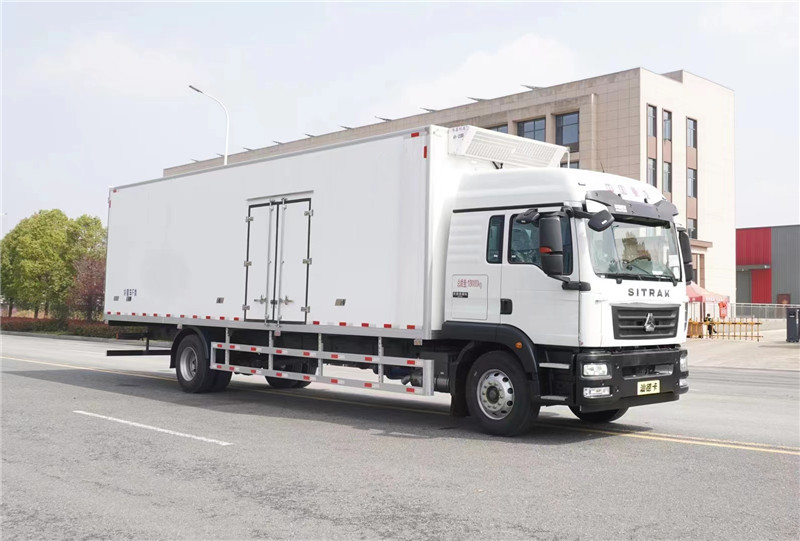 我公司生產的 重汽汕德卡G5高頂雙臥大單橋9米6冷藏車是用原裝重汽汕德卡G5高頂雙臥定型二類底盤改裝而成,具有馬力大,自重輕,采用國內外馳名冷藏機組,降溫快,
