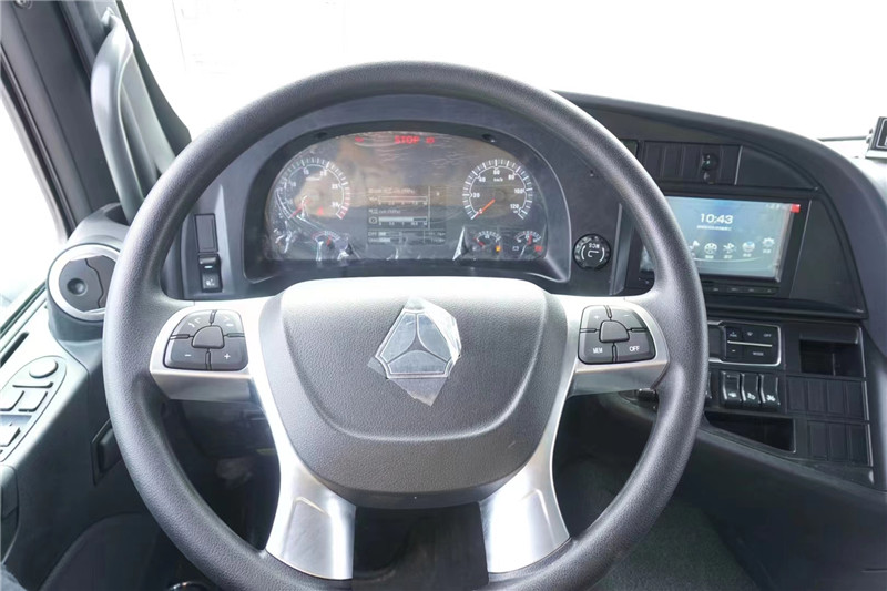 四幅式設計的多功能方向盤設計非常簡潔,多功能按鍵集成有接打電話、多媒體音量調節、定速巡航等功能,非常實用。搭載MC07.29-60發動機,匹配HW13709XSTCL變速箱(高低檔),黃金組合搭檔,后橋采用強化型沖壓焊接工藝,增加了后橋強度。