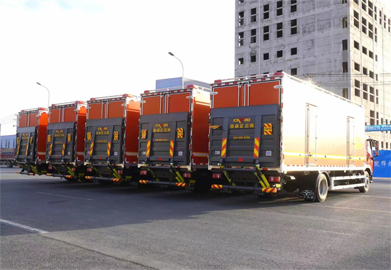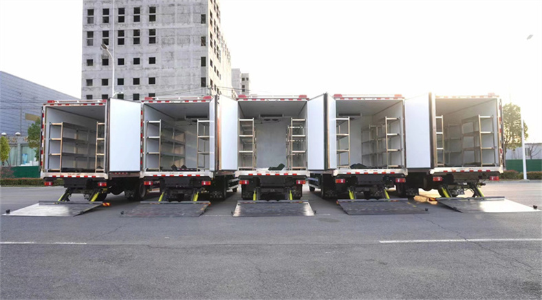 廂體中間安裝有溫控隔溫板,多用途隔離,雙溫雙控,前面冷凍后面冷藏。箱體內部可選裝地板鋁合金通風槽,可滿焊,溫濕度記錄儀,肉鉤導軌等專用設備,制冷設備安裝進口冷王,開利獨立制冷機組,最低溫度可達-18噸,可根據運輸貨物要求進行溫度調節,尾部安裝凱卓立1.5噸液壓尾板。鋁合金側防護,箱體內部安裝不銹鋼貨架,方便放置水果蔬菜,廂體可根據使用單位需求打印logo廣告.