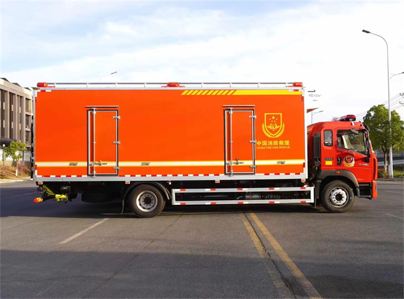 重汽豪沃7米6消防冷藏車專用配置:箱體內尺寸:7640*2420*2420(mm),斷橋隔熱工藝、整體結構框架;內外玻璃鋼板夾聚氨酯保溫層真空復合而成,外玻璃鋼顏色為消防紅底板為鋁花紋板,龍骨斷橋為松木復合板;木質隔溫結構;廂體厚度為8cm;不銹鋼包角;最新款鋁合金包邊型材;廂體內部采用2個LED照明燈;后門框為2mm厚不銹鋼材質;門框密封條為橡膠材質;加厚型不銹鋼鉸鏈及鎖件,副駕駛邊開側門。