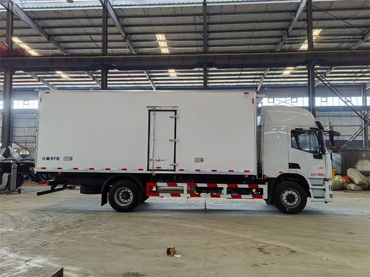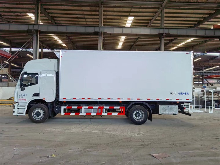 上汽紅巖杰豹6米8冷藏車上裝配置:廂體內尺寸:6800×2430×2450mm(40m3),外面料為新款啞光加厚玻璃鋼;夾心為高密度保溫材料;全密封雙組合聚氨酯膠粘連/榫卯合廂;整體框架式骨架;廂體保溫板厚度為8cm;鍍鋅包角;鋁合金包邊(鋼制密封鉚釘加固);廂體內部采用LED照明燈及廂體示寬燈;后門框為加厚不銹鋼門飾;密封條為三元乙丙橡膠黑色密封條(新款5葉片帶鋁合金壓條)后門+側門為全包圍密封條;側門框為絕熱PVC+加厚不銹鋼材質;廂體內前端加裝2個排水孔;2個防撞膠塊;1個門把手;副梁整體為輕量化高強鋼;壓板+U型栓+橡膠鋼絲墊皮+護網+擋泥板+3M反光膠板為標準件;其它標配。