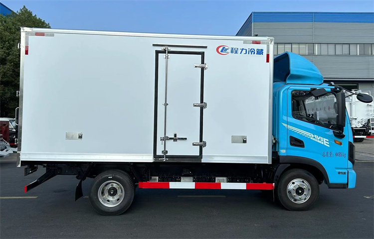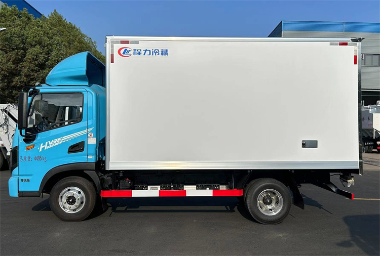 東風華神純電動4米2綠牌冷藏車上裝配置:廂內尺寸:4030*2100*2000mm,外面料為新款啞光加厚玻璃鋼;夾心為高密度保溫材料;全密封雙組合聚氨酯膠粘連/榫卯合廂;整體框架式骨架;廂體保溫板厚度為8cm;鍍鋅包角;鋁合金包邊(鋼制密封鉚釘加固);廂體內部采用LED照明燈及廂體示寬燈;后門框為加厚不銹鋼門飾;密封條為三元乙丙橡膠黑色密封條(新款5葉片帶鋁合金壓條)后門+側門為全包圍密封條;側門框為絕熱PVC+加厚不銹鋼材質;廂體內前端加裝2個排水孔;2個防撞膠塊;1個門把手;副梁整體為輕量化高強鋼;壓板+U型栓+橡膠鋼絲墊皮+護網+擋泥板+3M反光膠板為標準件;其它標配。