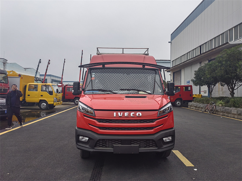 依維柯得意10-14座運兵車標準配置:車身顏色為消防紅,車輛配備器械柜、防暴盾、防暴叉、警棍等專用器材,主要用于警員、官兵運輸。選裝高位制動燈,選裝寬后上車踏板,選裝頂置平臺、頂置空調(diào)和后爬梯。選裝不帶防暴網(wǎng),全選裝或部分選裝頂置平臺、頂置空調(diào)、排氣扇,喇叭和照明燈。選裝頂置平臺、頂置空調(diào)時車高2850mm;選裝寬后上車踏板時車長5995;選裝不帶防暴網(wǎng)時整備質(zhì)量為2750kg。