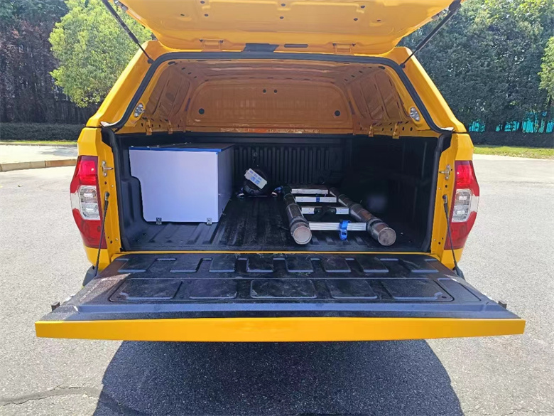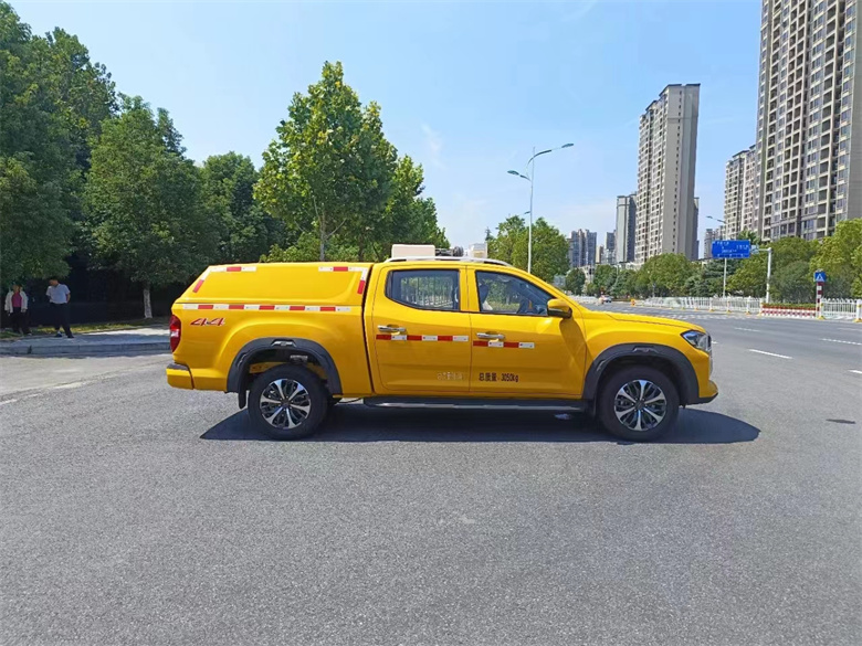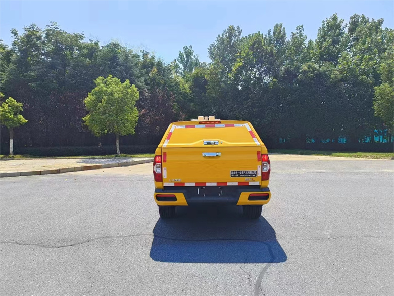 大通星際皮卡電力工程車標準配置:車廂頂部封閉且不可開啟;車頂裝備折疊升降照明燈,照明燈僅在駐車作業時使用(對應車高2020mm),選裝照明燈安裝位置(對應車高2020mm),選裝帶行李架、不帶折疊升降照明燈(對應車高1845mm),選裝不帶行李架、不帶折疊升降照明燈(對應車高1809mm);該車配備工具箱、線纜盤、工程作業梯等工程作業專用設備,主要用于一般工程搶修作業;前懸架型式為雙橫臂式獨立懸架;