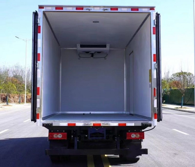 廂體采用真空吸附、液壓吸附一體成型生產(chǎn)線制造,三明治復(fù)合粘接,箱體內(nèi)部選裝地板通風(fēng)槽,副駕駛邊選裝單側(cè)門(mén),對(duì)開(kāi)雙側(cè)門(mén),頂部選裝運(yùn)輸鮮肉運(yùn)輸?shù)娜忏^導(dǎo)軌,用于牛羊肉冷鏈運(yùn)輸。可選裝用于藥品,疫苗運(yùn)輸?shù)奈迕嫱L(fēng)槽,溫濕度記錄儀等專(zhuān)用設(shè)備。制冷設(shè)備可選裝國(guó)產(chǎn)颶豐,凱利-15度冷凍制冷機(jī)組,可選裝進(jìn)口開(kāi)利,冷王冷凍制冷機(jī)組,最低溫度可達(dá)-18噸,可根據(jù)運(yùn)輸貨物要求進(jìn)行溫度調(diào)節(jié)。