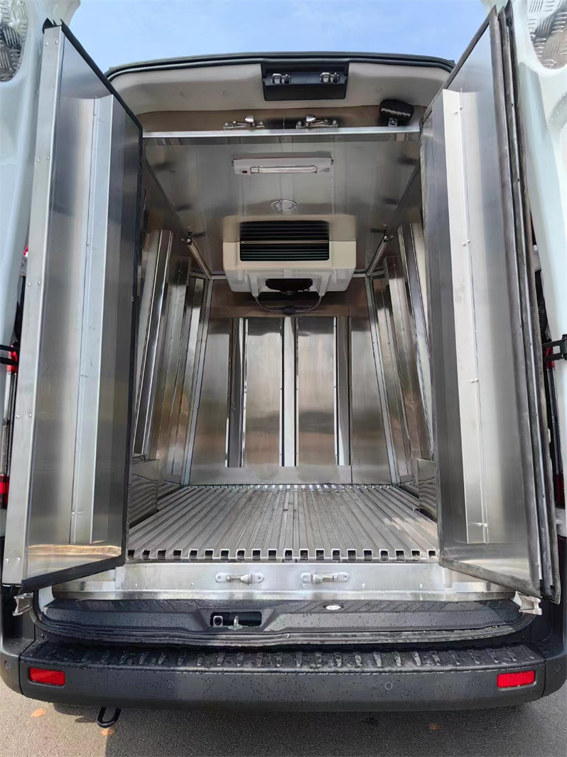 福特全順T6疫苗冷鏈運輸車專用配置:內膽圓弧式箱體, 廂體采用外玻璃鋼、內不銹鋼板、中間5CM 厚保溫板,5面通風槽,溫濕度記錄儀,箱體頂部安裝LED照明燈 為后艙提供照明,后艙卸貨專用照明燈 可調節照明視覺,為工作人員提供充足的亮度,內層不銹鋼 國家認可的食品級不銹鋼,具有良好的耐蝕性、耐熱性,低溫強度和機械特性,通風導流槽 確保貨物底部,側部不與廂體完全接觸,保證整個廂體(尤其底部)冷氣循環,紫外線消毒燈能夠有效保證對廂體的消毒,不銹鋼門鎖件 具備重量輕、強度高、耐腐蝕,溫濕度記錄顯示,GPS定位,藍牙打印,高低溫超限自動報警功能,在駕駛室里即可操作,簡單方便!制冷設備安裝國產雙溫制冷機組,夏天制冷,冬天加熱。選裝進口開利或冷王制冷機組。