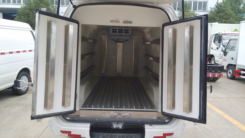 標(biāo)準(zhǔn)配置:箱體尺寸為2870×1380×1230約5方,廂體厚度為8厘米。內(nèi)外板材采用冷藏車專用玻璃鋼,(可反射陽光),中間夾層為聚氨酯發(fā)泡隔熱材料,(防火阻燃隔熱)大型千噸壓力機壓制而成,配置箱體全為不銹鋼鎖件,不銹鋼包角,不銹鋼門框,帶有頂燈及防撞塊。我廠的冷藏保溫車保溫材料選用進口級別XPS,吸水率≤1,導(dǎo)熱系數(shù)≤0.028W/mk,抗壓≥150Kpa,密度30~45kg/m3,使用國際上最為先進的第五代全封閉聚氨酯板塊粘接結(jié)構(gòu),廂板表面材料有玻璃鋼、不銹鋼、鋁合金、彩鋼板等材料可供選擇,廂體成型后具有質(zhì)量輕,保溫系數(shù)高,抗沖擊力強,無滲漏等優(yōu)點,對大氣、水和酸、堿、鹽等介質(zhì)具有良好的耐腐蝕性和抗老化性。通過優(yōu)化設(shè)計,降低了整車質(zhì)心,增大了有效容積。經(jīng)測試,整車綜合節(jié)能率,使用壽命,比一般冷藏保溫廂高1~2倍。
