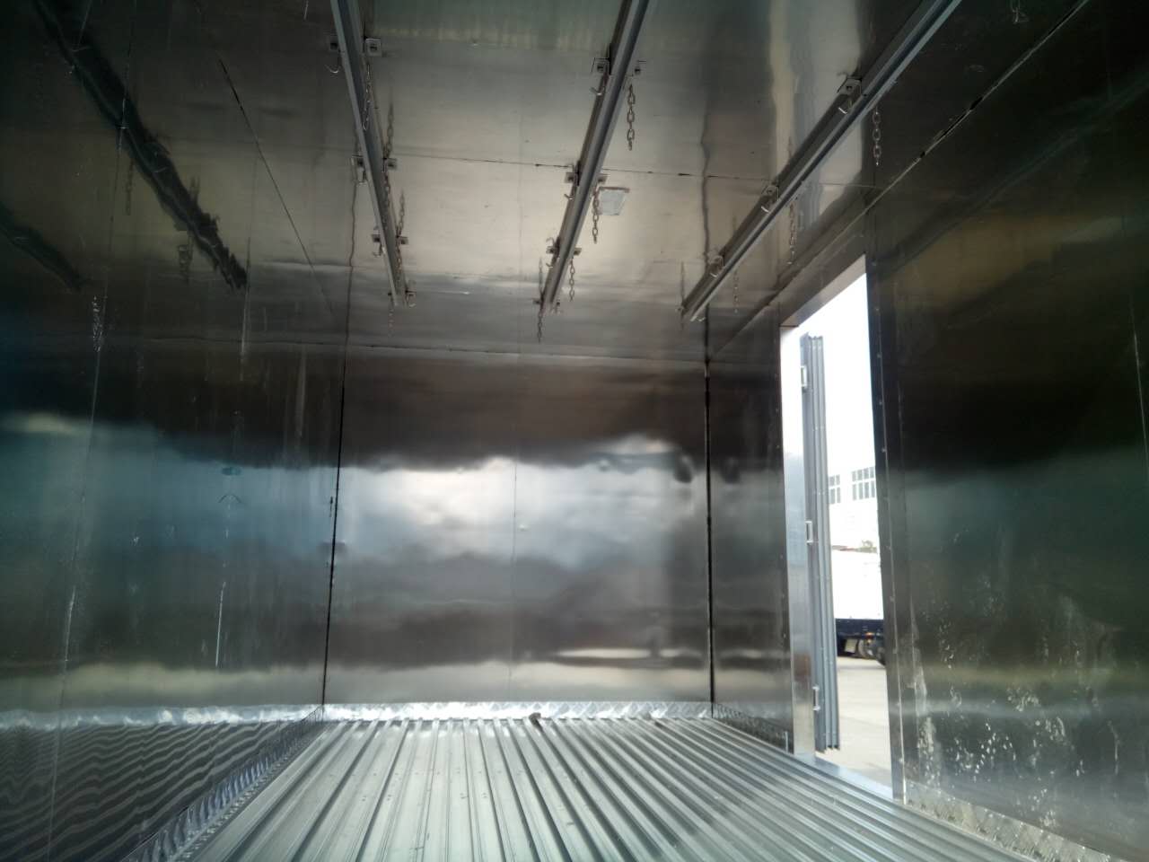 肉鉤冷藏車:其廂體采用拼裝技術,廂板采用全塑全封閉復合材料板組合結構,內外壁板選用優質玻璃鋼或合金防銹鋁板、不銹鋼板,中間夾層為聚氨脂發泡隔熱材料,各板塊間用高強度膠粘接,配以鋁合金型材鉚接成整體。在廂體與門體間加裝搞低溫絕熱密封條,門鎖機構采用國際廂式車不銹鋼標準件,廂板無接縫、外表光潔、易清洗、抗沖擊、耐腐蝕。可根據用戶需求專業設計任意側門、不同厚度廂板、夾隔不同溫區、不同材質及色彩的內外廂體蒙皮等。在冷藏車內設計安裝不銹鋼肉鉤,方便運輸裝卸鮮肉。 我公司生產的冷藏車均為廠家直銷,可發往全國各地,所有車型均有現貨供應、首付后,可貨到付款!