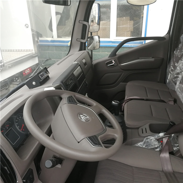 歐馬可S3國五5米2排半冷藏車底盤配置:福田歐馬可S3新款排半駕駛室,駕駛室可坐3人,4200軸距,福田康明斯3.8排量156馬力國五柴油發動機,6檔變速箱,斷氣剎,ABS,825R16鋼絲胎,駕駛室帶原廠空調,方向助力,定速巡航,7噸后橋.電動玻璃,中控鎖,遙控鑰匙,可調節大燈,自動剎車臂。