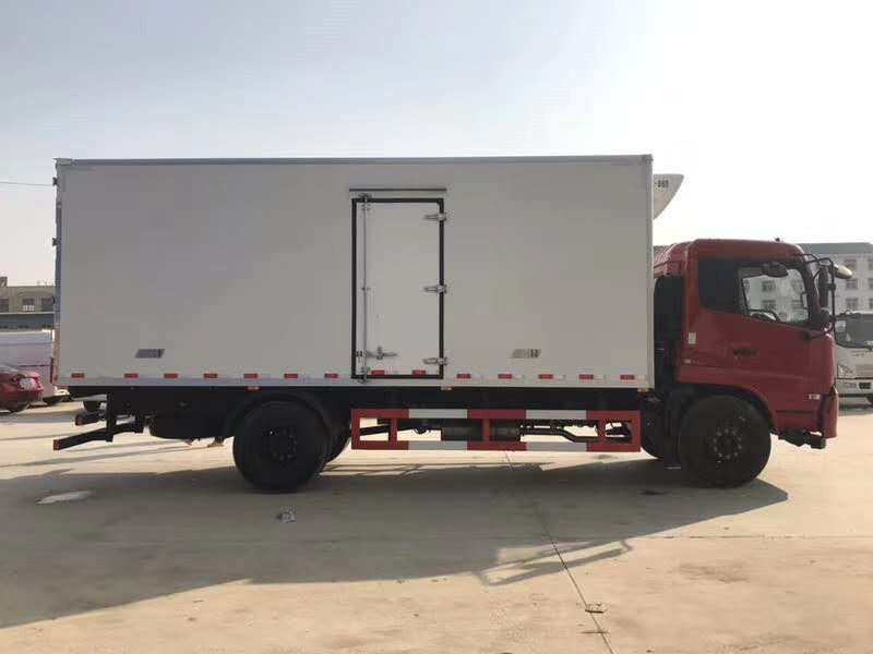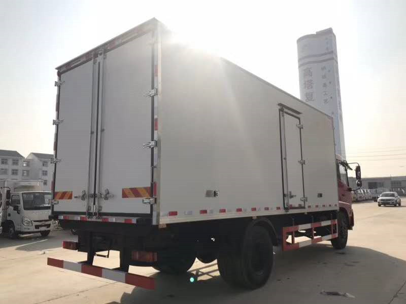 紅色東風(fēng)天錦國五6米8豬肉白條肉掛鉤冷藏車標(biāo)準(zhǔn)配置:箱體內(nèi)尺寸長×寬×高為:6550×2440×2400,約38立方,廂體厚度為8厘米。冷藏廂體內(nèi)外板材采用冷藏車專用玻璃鋼,(可反射陽光),中間夾層為聚氨酯發(fā)泡隔熱材料,(防火阻燃隔熱),千噸壓機(jī)壓制而成,配置箱體全為不銹鋼鎖件,不銹鋼包角,不銹鋼門框,帶有頂燈及防撞塊。廂體底部為鋁花紋板。我廠的冷藏保溫車保溫材料選用進(jìn)口級(jí)別XPS,吸水率≤1,導(dǎo)熱系數(shù)≤0.028W/mk,抗壓≥150Kpa,密度30~45kg/m3,使用國際上最為先進(jìn)的第五代全封閉聚氨酯板塊粘接結(jié)構(gòu),廂板表面材料有玻璃鋼、不銹鋼、鋁合金、彩鋼板等材料可供選擇,廂體成型后具有質(zhì)量輕,保溫系數(shù)高,抗沖擊力強(qiáng),無滲漏等優(yōu)點(diǎn),對(duì)大氣、水和酸、堿、鹽等介質(zhì)具有良好的耐腐蝕性和抗老化性 。通過優(yōu)化設(shè)計(jì),降低了整車質(zhì)心,增大了有效容積。經(jīng)測(cè)試,整車綜合節(jié)能率,使用壽命,比一般冷藏保溫廂高1~2倍。廂體加裝5排肉鉤導(dǎo)軌,底盤加裝鋁合金通風(fēng)槽。