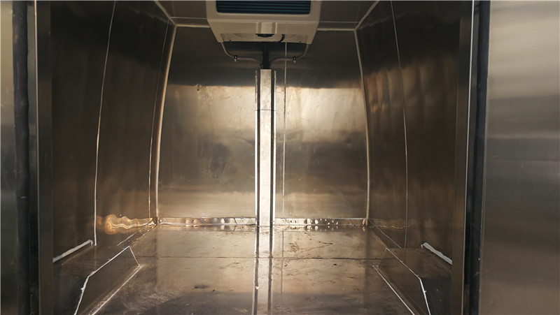 依維柯面包冷藏車車身采用了全金屬車頂與車身一體化剛性結構設計,高精度爆接成型,提高了冷藏車的整車強度,高速行駛時振動噪聲極小。