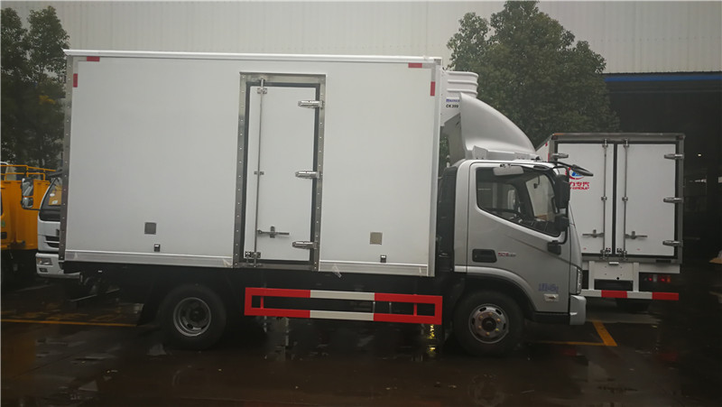 歐馬可S3國五4米2 屠宰場對接式肉鉤冷藏車標準配置:箱體尺寸長×寬×高為:4080×21350×2200約21立方,廂體厚度為8厘米。內外板材采用冷藏車專用玻璃鋼,(可反射陽光),中間夾層為聚氨酯發泡隔熱材料,(防火阻燃隔熱),配置箱體全為不銹鋼鎖件,不銹鋼包角,不銹鋼門框,箱體底板為鋁花紋板,帶有頂燈及防撞塊。我廠的冷藏保溫車保溫材料選用進口級別XPS,吸水率≤1,導熱系數≤0.028W/mk,抗壓≥150Kpa,密度30~45kg/m3,使用國際上最為先進的第五代全封閉聚氨酯板塊粘接結構,廂板表面材料有玻璃鋼、不銹鋼、鋁合金、彩鋼板等材料可供選擇,廂體成型后具有質量輕,保溫系數高,抗沖擊力強,無滲漏等優點,對大氣、水和酸、堿、鹽等介質具有良好的耐腐蝕性和抗老化性 。通過優化設計,降低了整車質心,增大了有效容積。經測試,整車綜合節能率,使用壽命,比一般冷藏保溫廂高1~2倍。