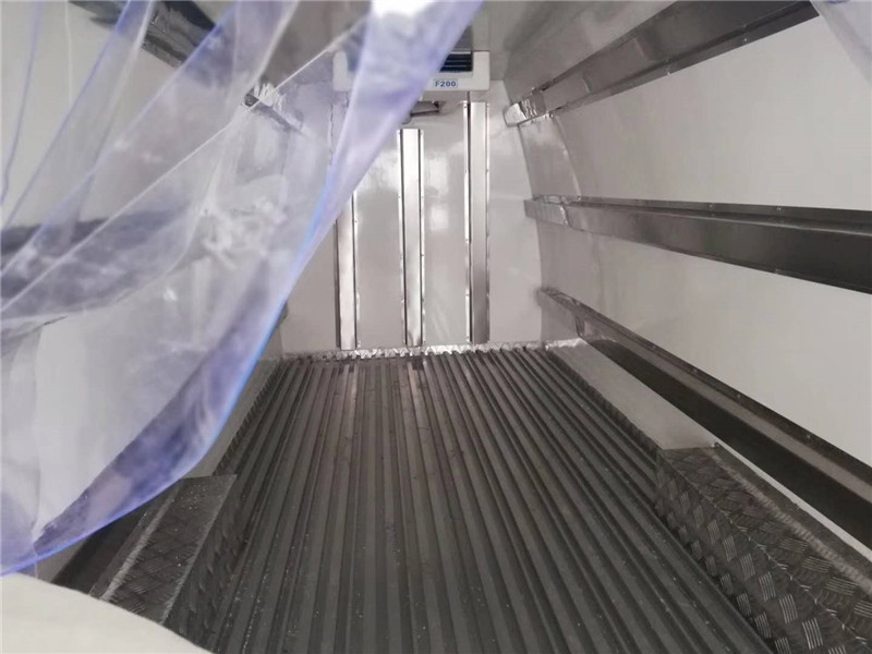 福田G7藥品疫苗冷藏車標準配置:箱體尺寸為2930x1360x1450約5.5方。內膽圓弧式廂體,內外板材采用冷藏車專用玻璃鋼,(可反射陽光),中間夾層為聚氨酯發泡隔熱材料,(防火阻燃隔熱)大型千噸壓力機壓制而成,配置箱體全為不銹鋼鎖件,不銹鋼包角,不銹鋼門框,帶有頂燈及防撞塊。我廠的冷藏保溫車保溫材料選用進口級別XPS,吸水率≤1,導熱系數≤0.028W/mk,抗壓≥150Kpa,密度30~45kg/m3,使用國際上最為先進的第五代全封閉聚氨酯板塊粘接結構,廂板表面材料有玻璃鋼、不銹鋼、鋁合金、彩鋼板等材料可供選擇,廂體成型后具有質量輕,保溫系數高,抗沖擊力強,無滲漏等優點,對大氣、水和酸、堿、鹽等介質具有良好的耐腐蝕性和抗老化性 。通過優化設計,降低了整車質心,增大了有效容積。經測試,整車綜合節能率,使用壽命,比一般冷藏保溫廂高1~2倍。廂體內部加裝5面通風槽,加裝溫濕度記錄儀。安裝國產雙溫冷機,夏天制冷,冬天加熱。